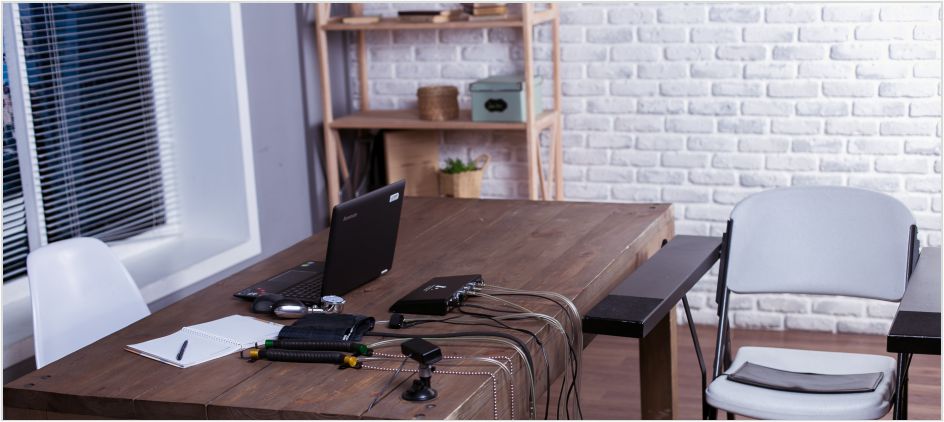 5. У приміщенні для проведення дослідження повинен знаходитися стіл, на якому розташовується поліграф, ноутбук чи комп’ютер та кілька стільців (див. рис. 1).
